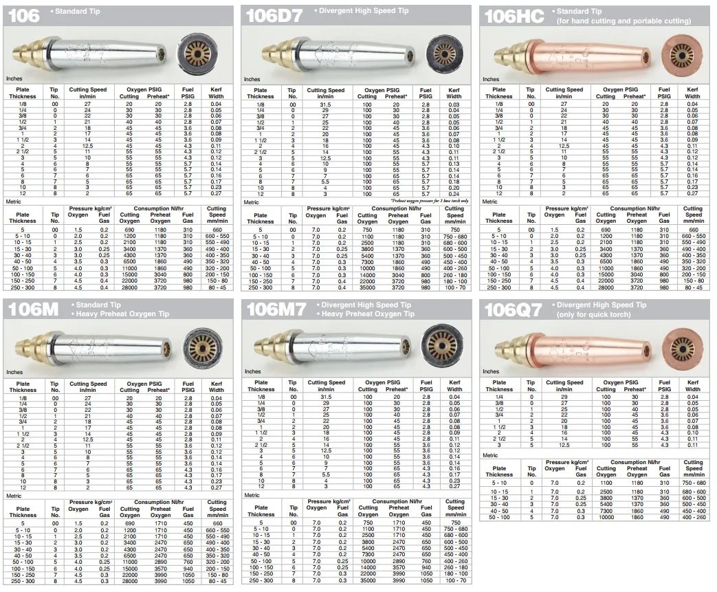 Each Koike cutting tip is designed for proper gas efficiency and to provide the highest cutting accuracy possible