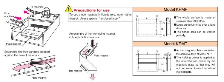 • These magnets are installed on chutes and hoppers to attract and separate magnetic substances suah as iron powder from raw materials used in chemical, drug and other fine particle industries