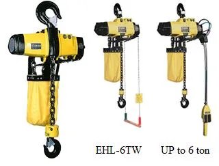 • Contribute to the improvement of working efficiency and worker's fatigue. • Suit the work of which high speed is required, such as material lifting etc. • Employ an air motor and no electric power is required. • Work with stepless speed control. • Include a reverse winding prevention device which actuates at 2m wire rope pay out. • This is available for reverse winding prevention. (EHW series only) • Limitation mechanism is applied to EHL series.