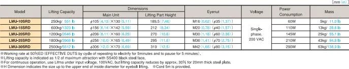 A separate rectifier is not required. This unit has its own, rectifier built in. • Easy to release the lifting material by the inverse exciting switch provided. • The holding power is the same as LMU (see the holding power graph and lifting reference for model LMU).