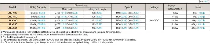 • Electromagnetic type lifting magnets used as a lifting section of cranes and hoists for transportation of steels in warehouses or machining shops or for mounting and dismounting workpieces to and from machine tools.