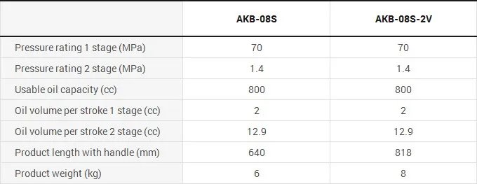 ●They are optimized for Remote Toe-Lift Jacks and for Super Low Floor Cylinder Jack. ●They have a double cylinder discharge mechanism (automatic switching between high pressure and low pressure) so that their jack strokes widths are widened when their pressures are low or none to shorten their work time. ●Our 2V series Double Pumps enable a synchronized operation of two jacks by equipping its branch with the automatic adjustment valve. ●These Hand Pumps can be used for other suppliers’ jacks.