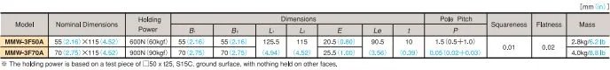 • Since these chucks have three attractive faces, one face may be used for mounting the chuck and other faces for holding workpieces. • They have magnetic poles arranged at micro pitches to hold small workpieces. • They are of waterproof construction.