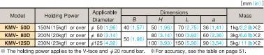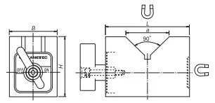 • Workpieces can be held on the top face (V face), and rear face. • T-handle ON/OFF switch comes attached, but can be removed. • They are of dripproof and oilproof construction. • One set consists of two blocks. • Super high accuracy finish is also available. Please contact us.