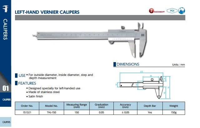 Left Hand Vernier Calipers (THL-150)