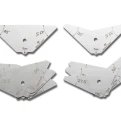 FEATURES ● Indication of size limit for easy judgement(angle step by 2.5°,throat thickness step by 1mm) ● Set of 4 pieces ● Provided with plastic case and ball chain