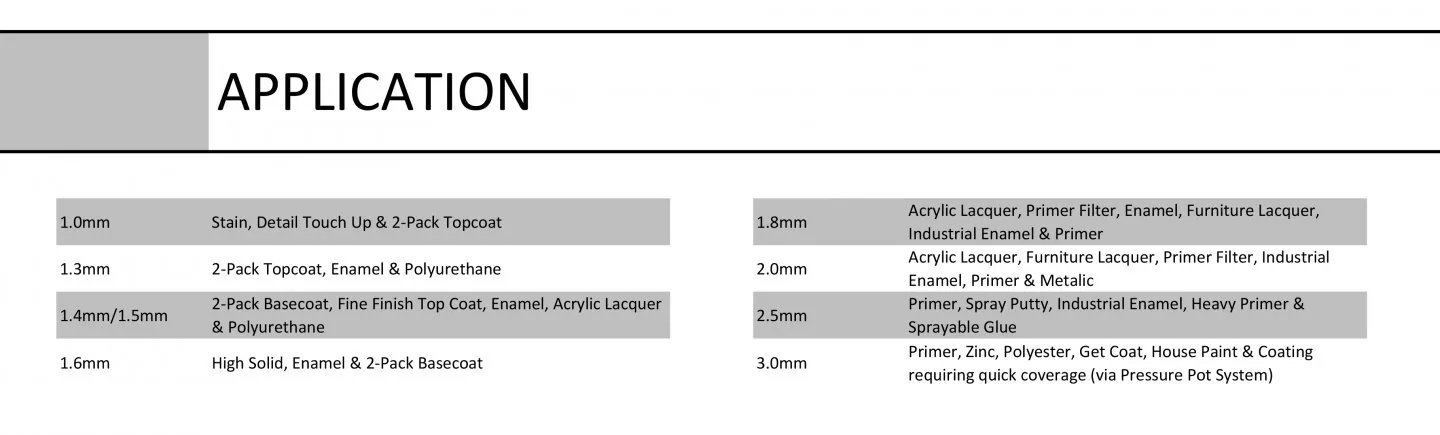 > central Gravity Feed, Production Full size > pattern optimize for overlapping efficiency & color matching > high transfer Efficiency (IPA and EPA approved)