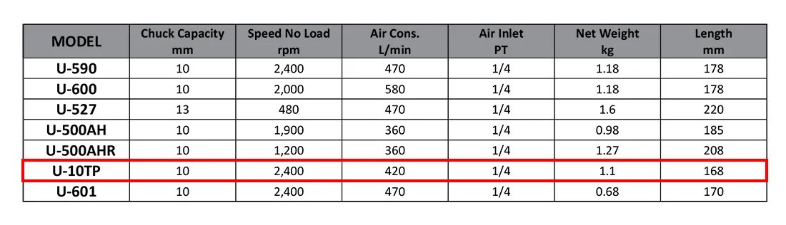 Air drill, pneumatic drill, pneumatic tool, air tool, air tools, 3/8', 3/8 inch, 9.5, u-10tp