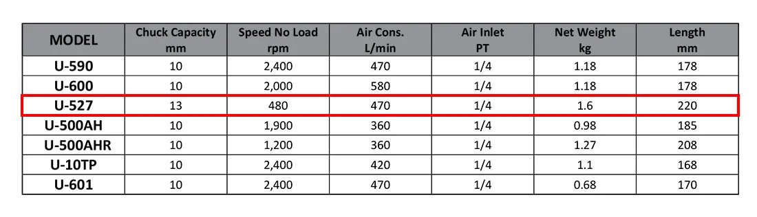 Air drill, pneumatic drill, pneumatic tool, air tool, air tools, 1/2', 1/2 inch, 12.7, u-527
