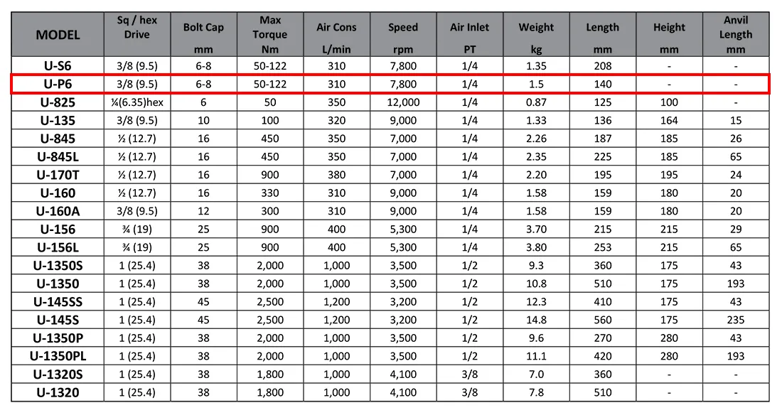Air impact wrench, impact wrench, pneumatic tool, air tools, air tool, 3/8', 3/8 inch, 9.5 square drive, u-p6