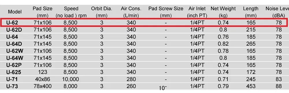 Widely used at various industries of car body repairing, wooden working, metal working, fiberglass reinforced plastic(FRP) working, etc.