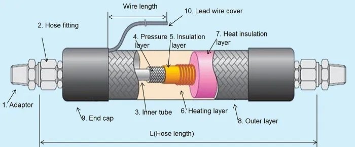 The hot hose keeps warming and heating and helps prevent an increase in viscosity, decrease in temperature, and aids in the prevention of freezing of fluids. At Toyonaka Hot, we design and manufacture the best solution to meet your specifications. Our Hot Hose will save time and money spent on preparing heater tracers, insulators, and other related activities giving you a big advantage over your competition. In addition, we provide various temperature controllers such as a built-in temperature adjustment thermostat, etc. Tags: Hot hose, heated hose, heating hose, temperature hose, hot glue, hot-melt, hot melt, warming hose, applicator hose, glue system, adhesive applicator hose,
