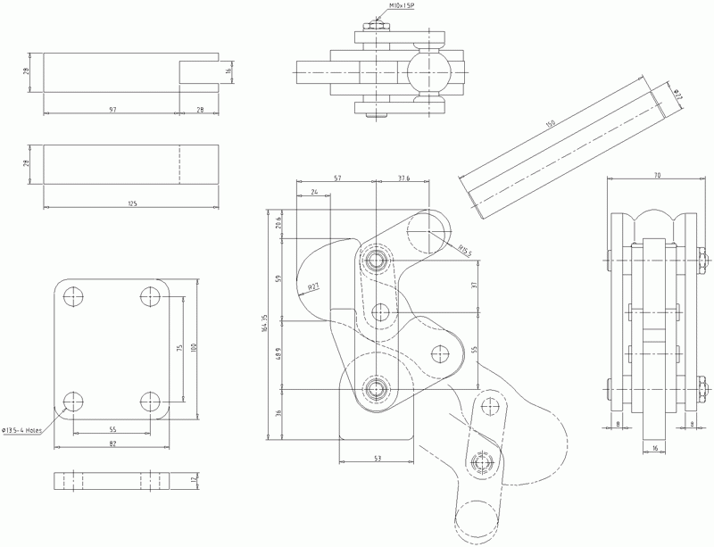 Holding Capacity : 1000 Kgs. Weight : 4.10 g. Handle Moves : 120° Bar Moves : 200°