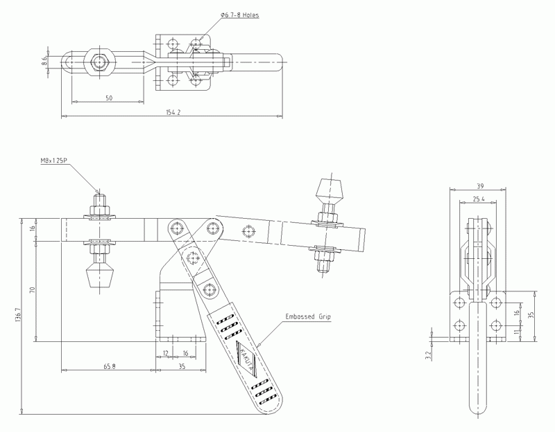 Holding Capacity : 100 Kgs. Weight : 396 g. Handle Moves : 60° Bar Moves : 96°