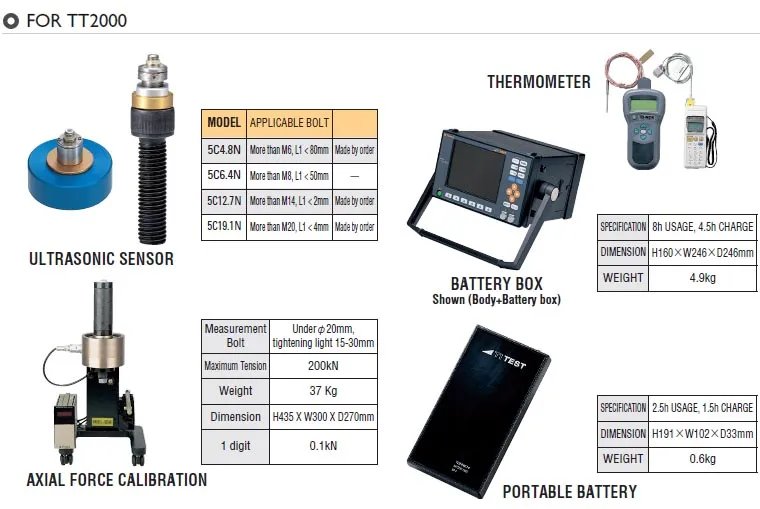 This is introduction of a variety of accessories to use Tohnichi products comfortably, including universal arms, batteries, battery chargers, connecting cables, refill inks, etc.