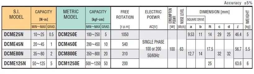 • Electric powered type ME model. • Available for 6 control mode function. • Automatic torque converter enables the multiple unit stable and accurate tightening, high speed in provisional tightening and low speed for final tightening. • Easy to adjust torque value. • When tightening is completed, the square drive reverses automatically, so it is easy to replace the socket. • When the set torque reaches, the toggle mechanism operates instantly to stop the multiple unit. At the same time, the limit switch works to give signal that tightening is completed. • Monitoring of tightening torque is available by using a torque sensor.