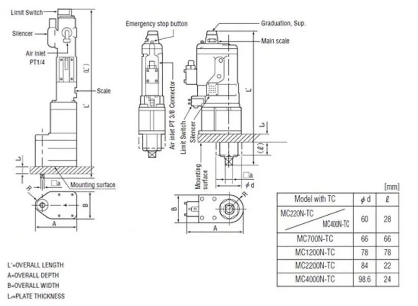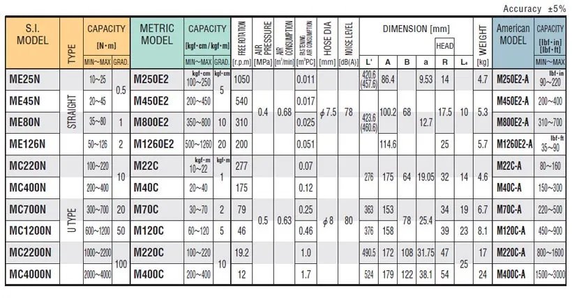 • Automatic torque converter enables the multiple unit stable and accurate tightening, high speed in provisional tightening and low speed for final tightening. • Fluctuation of the air pressure will not affect the accuracy and repeatability of the tool. • Easy to adjust torque value. • When tightening is completed, the square drive reverses automatically, so it is easy to replace the socket. • When the set torque reaches, the toggle mechanism operates instantly to stop the multiple unit. At the same time, the limit switch works to give signal that tightening is completed. •Monitoring of tightening torque is available by using a torque sensor.