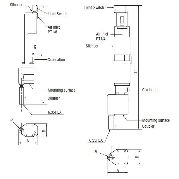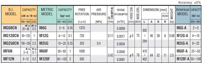 • Fluctuation of the air pressure will not affect the accuracy and repeatability of the tool. • Easy to adjust torque value. • When the set torque reaches, the toggle mechanism operates instantly to stop the multiple unit. At the same time, the limit switch works to give signal that tightening is completed.