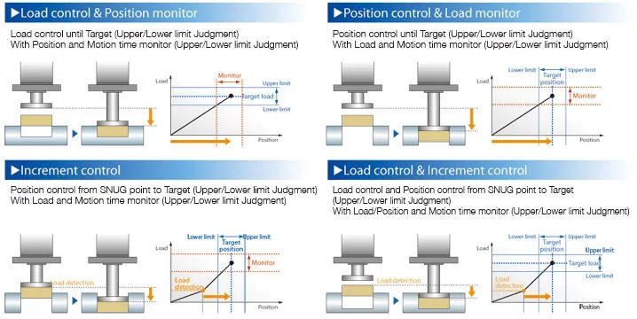 Improvement of Production: •Controlling load, position, speed, and time with high accuracy optimizes production cycle time. •Feeding back real time operation conditions prevents damaging work object.