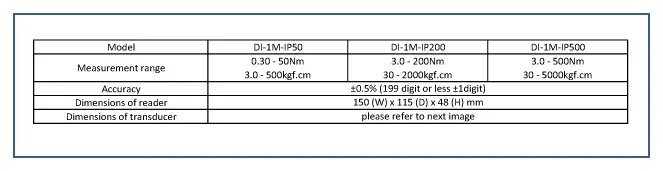 CEDAR DI-1M provides wide torque range from 0.3 to 500Nm (3 size models) Strong and durable -- can be used to measures bpm of impact wrench Comes as a set of reader and transducer