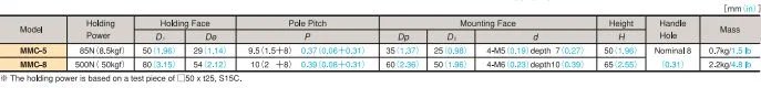 • These chucks are powerful with special construction using Alnico magnet steel. • Although small, these chucks have an ON/OFF mechanism.