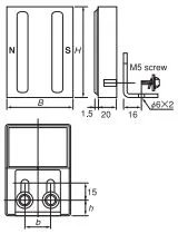 • Ultra-thin type 20mm thick. • This separator can be installed in a wide variety of locations, for example, direct installation on a wall face or installation with the L-shaped attachment. • The installing position is vertically abjustable with the L-shaped attachment. • One set consists of two units.