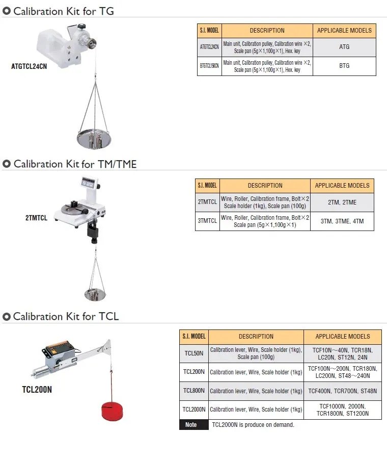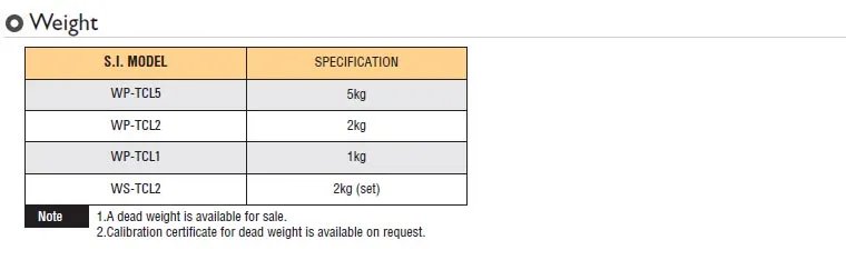 For more information on dead weights, please contact Tohnichi sales office.