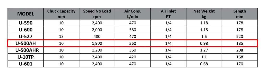 Air drill, pneumatic drill, pneumatic tool, air tool, air tools, 3/8', 3/8 inch, 9.5, u-500ah