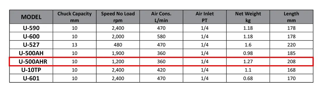 Air drill, pneumatic drill, pneumatic tool, air tool, air tools, 3/8', 3/8 inch, 9.5, u-500ahr