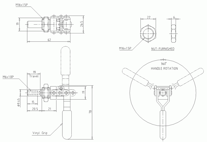 Smallest Flush Mounted Action clamp has free handle, clamping can be made at free position. It is widely applicable and workable for push and pull action. Equipped with red vinyl grip.