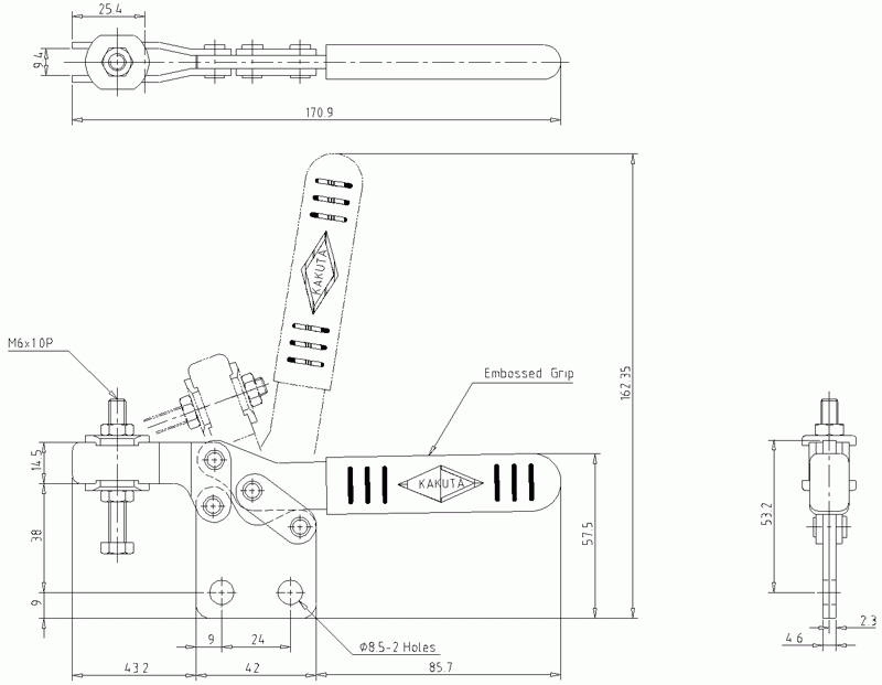 Special hold down model is supplied with embossed red handle grip for secure holding purpose. These straight base models are available in two sizes, 38S(S) and 38S(L).