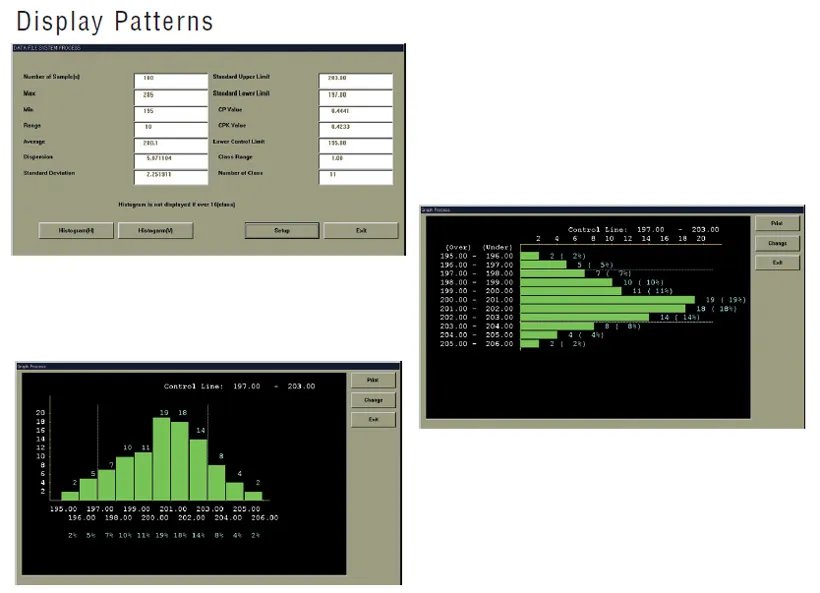 • For PC. • DFS is the software used for the data processing, measured by ST, CEM, TME, etc. • Data, measured by digital instrument, can be input by manual or automatic. • Data can be deleted or changed as required. • Statistical process maximum value, minimum value, range, average value, standard deviation and Cp value are picked up among the data in display and the histogram is displayed. • File As 100 data as one file, up to maximum 50 files can be saved.