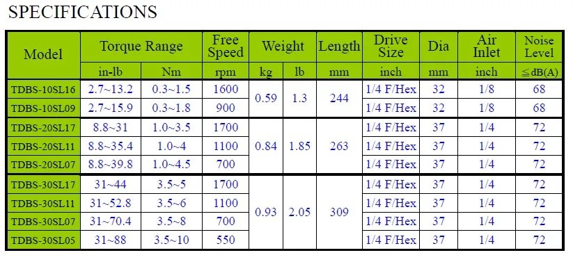 TDBS Straight Series Pneumatic Torque Screwdriver (0.3-10Nm)