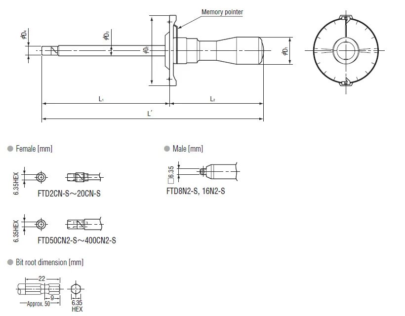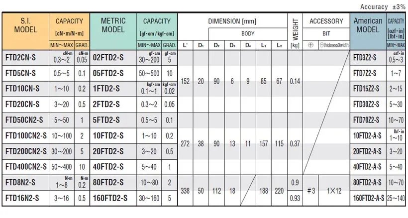 • Basic model of direct reading type torque driver. • Suitable for inspecting tightened screws. • Used for inspection by loosening torque and retightening torque methods. • Memory pointer shows the maximum torque applied. • T-bar is standard accessory for FTD8N2-S and 16N2-S. • Applicable to use in the EU region. Comply with calibration procedures of ISO6789 Type I Class D.